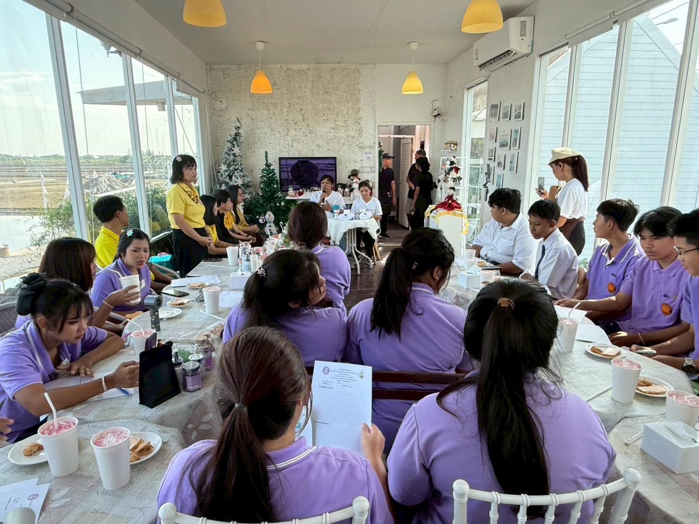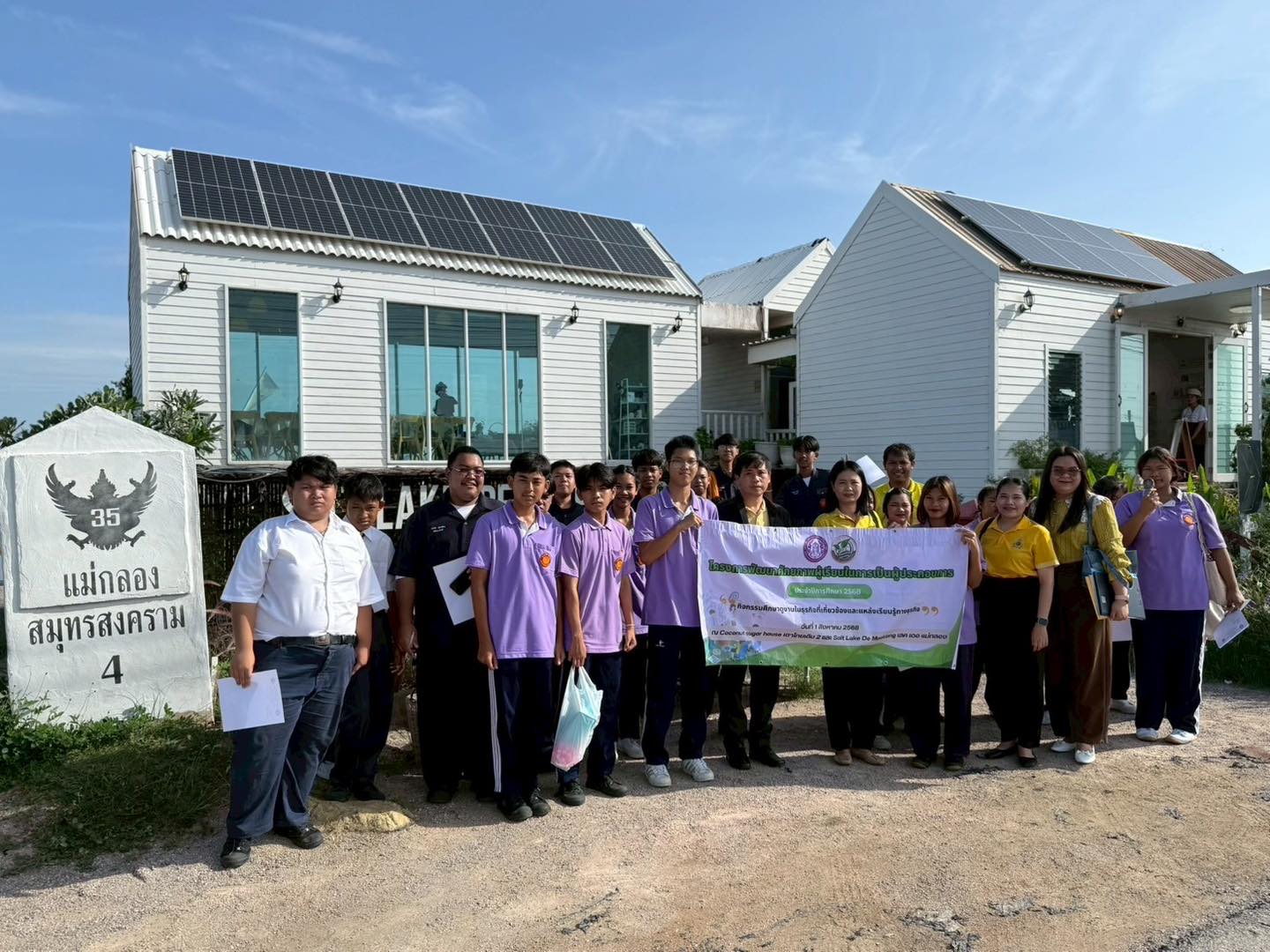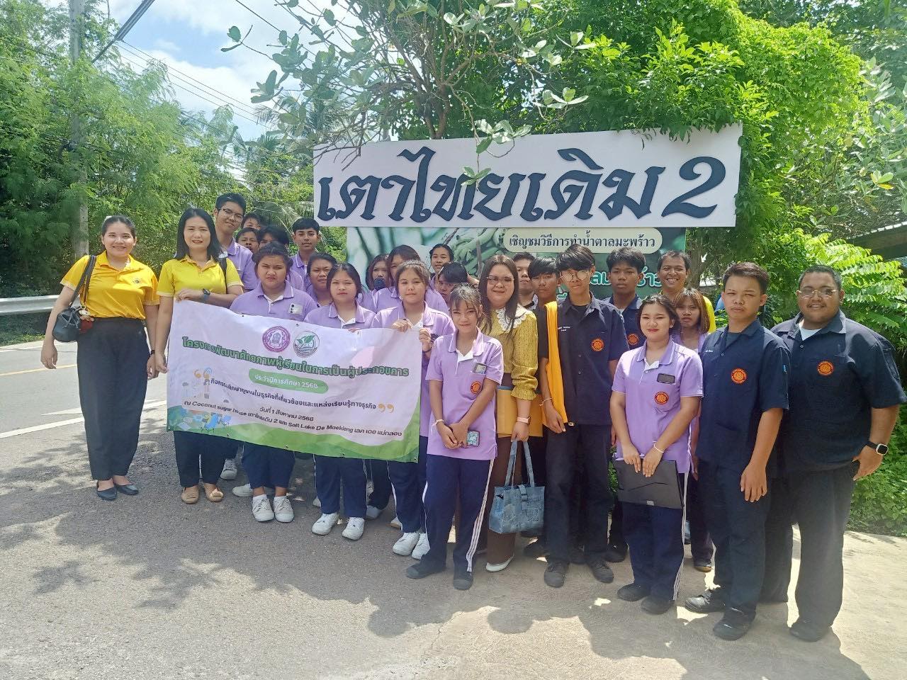 วันที่ 1 สิงหาคม 2568 เวลา 09.00 น. ดร.ประวิทย์ สนับแน่น ผู้อำนวยการวิทยาลัยสารพัดช่างสมุทรสงคราม อนุญาตให้งานศูนย์บ่มเพาะผู้ประกอบการอาชีวศึกษา โดยมี นายสุรชาติ ชื่นพิชัย รองผู้อำนวยการฝ่ายแผนงานและความร่วมมือและฝ่ายพัฒนากิจการนักเรียนนักศึกษา คณะครู นำนักเรียน นักศึกษา ระดับชั้น ปวช. จำนวน 27 คน เข้าร่วมศึกษาดูงานในโครงการพัฒนาศักยภาพผู้เรียนในการเป็นผู้ประกอบการ ประจำปี 2568 “กิจกรรมศึกษาดูงานในธุรกิจที่เกี่ยวข้องและแหล่งเรียนรู้ทางธุรกิจ” จำนวน 2 แห่ง ได้แก่